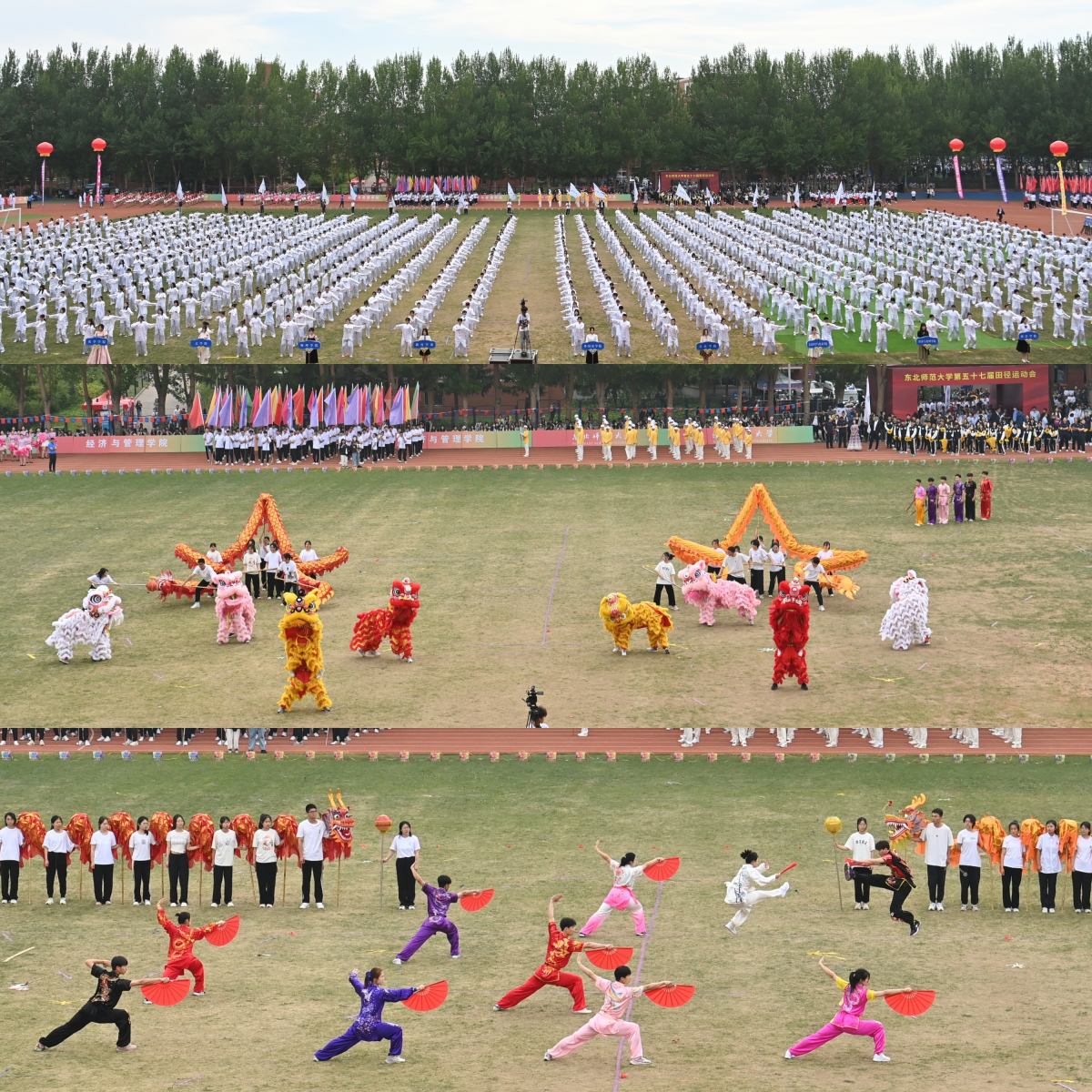 千人太极拳比赛整齐划一,舞龙舞狮表演热烈欢腾,武术表演技艺精湛,由学校18个学院学生和学校武术队带来的精彩节目,展现了中华传统文化的刚柔相济,在全场热烈的氛围中,学校第五十七届运动会正式拉开序幕。