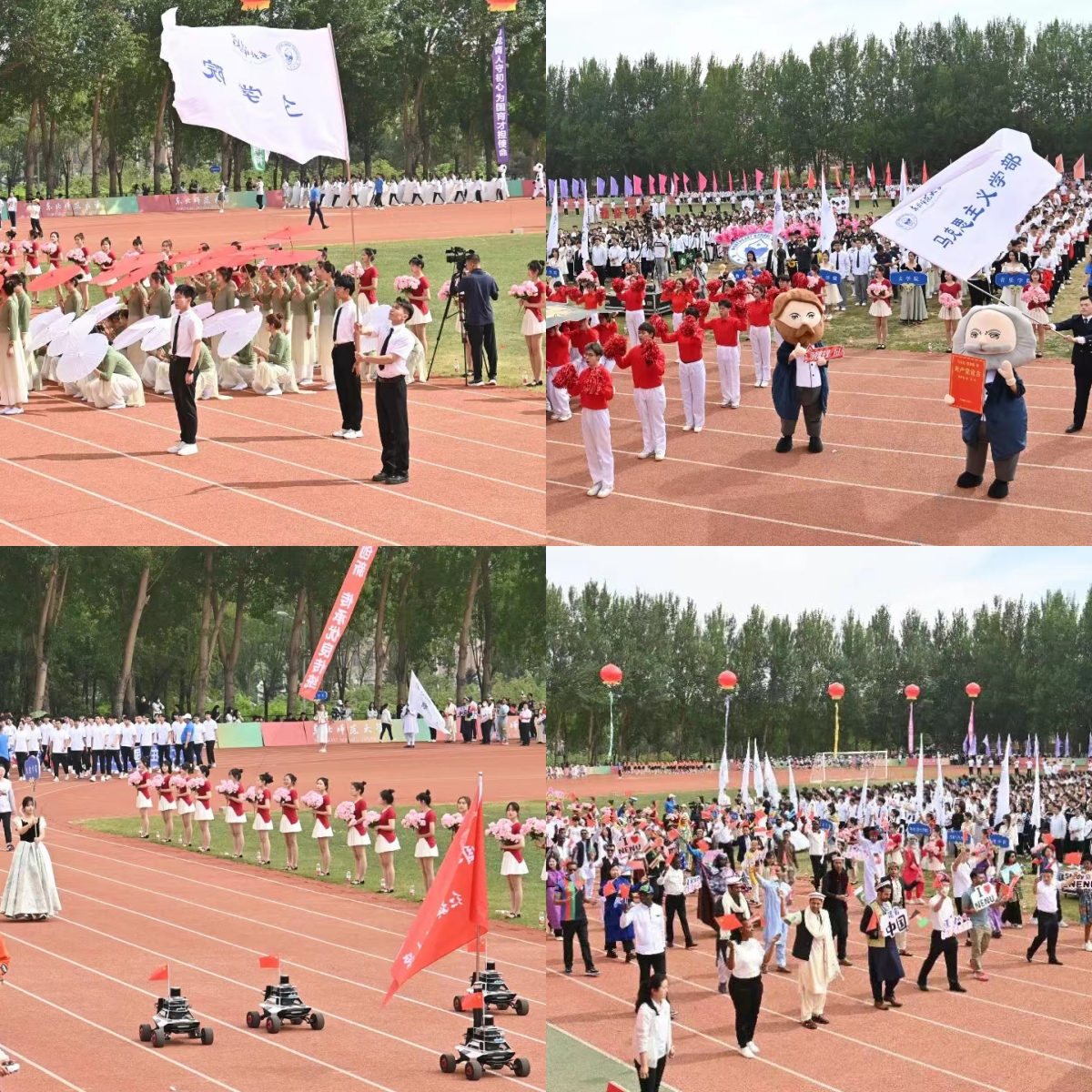 伴随着激昂的进行曲,裁判员和运动员代表队依次入场,接受主席台检阅。师生检阅队伍精神抖擞,步履铿锵,学院和单位方阵各具特色,花样频出,彰显出东师人青春昂扬的精神风貌。大型团体操表演《迎风飘扬的旗》展现了东师人70余年来“强师报国、求实创造”的不懈追求。
