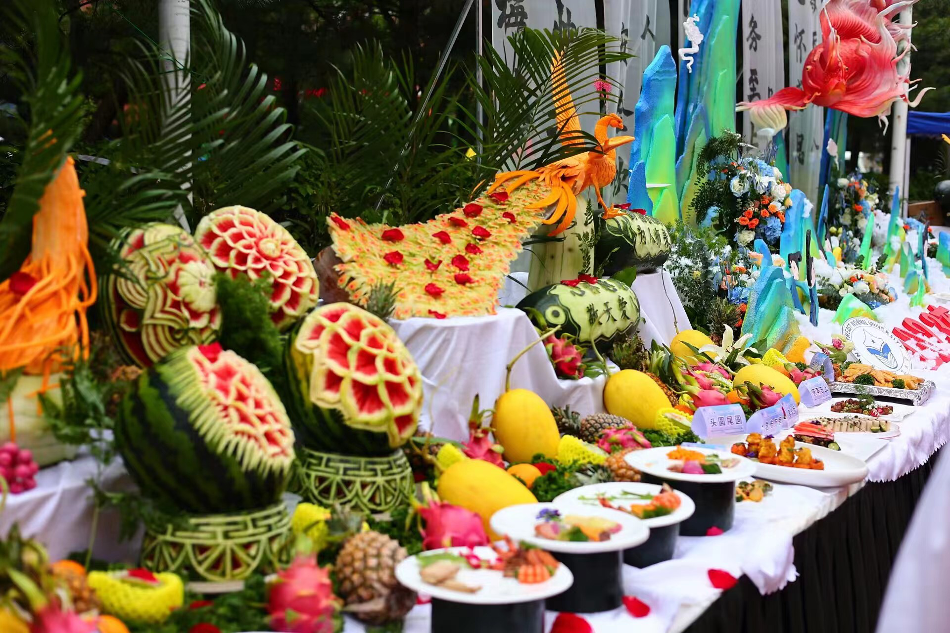 与运动会同时进行的,还有以“会展东师,美食天堂”为主题的第七届东师美食嘉年华活动。食物雕刻构思精巧、栩栩如生;“千里江山”和“高山流水”隔空呼应,相得益彰;各式菜系争奇斗艳、难分伯仲;免费分发的巨型蛋糕和烤全羊,在无数学子们的期待和惊叹中,将美食节的气氛推上了高潮……此次活动由后勤保障部饮食服务中心与校团委联合举行,在两校区餐厅及周边以食会友,邀师生共品东师“食韵”。从精心烹饪的珍馐佳肴到精美可爱的小糕点,菜品中融入了多种中国元素、东师元素,每道菜都有自己独特的主题、故事和味道。活动采取线上与线下相结合的形式进行,川剧变脸、舞狮表演、音乐演唱等精彩节目,为美食节增添了火热气氛。当天,学校餐厅推出全部档口7折特价活动,以回馈广大师生的支持。